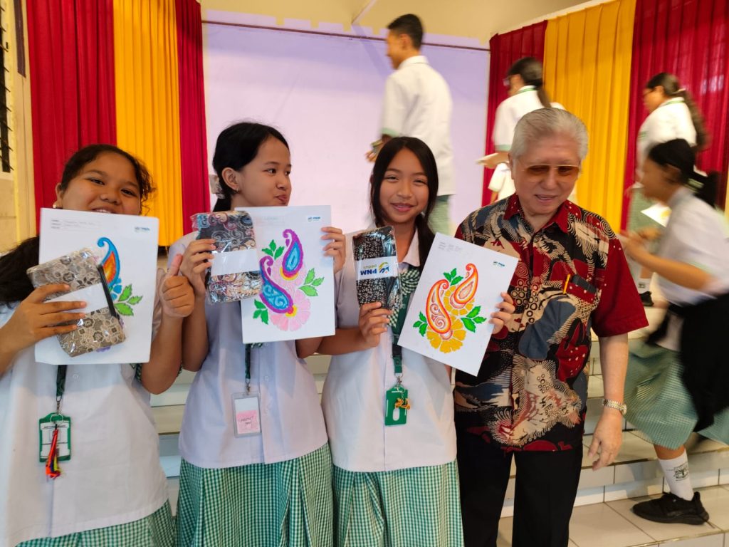 “Seru banget saat ikut mewarnai gambar corak batik. Saya bisa bebas mengekspresikan apa yang saya pikirkan. Sebelum lomba, kami diberi penjelasan tentang berbagai corak batik di seluruh nusantara. “kata Kiel kelas VII.