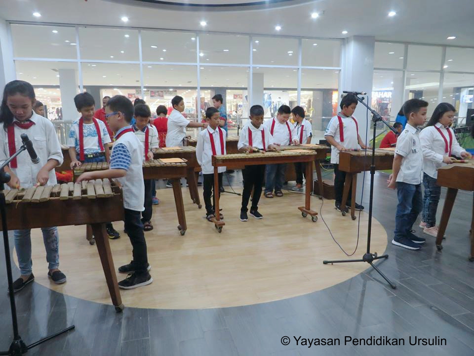 Kemudian acara dilanjutkan dengan penampilan angklung “You Are My Shunshine” dan “Padhang Bulang” oleh peserta didik unit TK, penampilan kolintang “Pecel Madiun” oleh peserta didik unit SD, penampilan lagu “Gethuk” dengan iringan live music orkes Melayu kolaborasi dengan angklung oleh peserta didik unit SMP. Acara ditutup dengan menyanyikan bersama- sama lagu “Insieme in Diversity and Spirit of Serviam”.