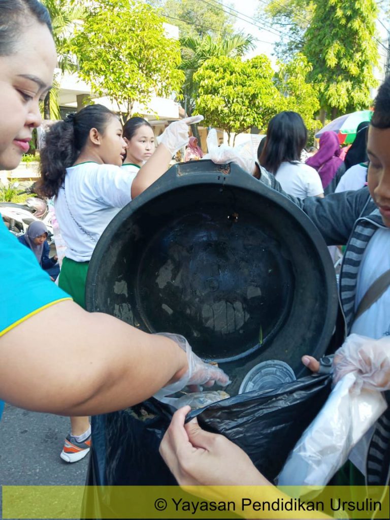 Dalam acara peduli lingkungan, para siswa-siswi menyampaikan pesan kepada orang-orang untuk tidak membuang sampah sembarangan dan mengurangi penggunaan plastik serta kantong kresek hitam. Dalam aksinya, para siswa-siswi menggunakan ember bekas sebagai wadah atau tempat untuk mengumpulkan sampah-sampah yang berada di jalan.