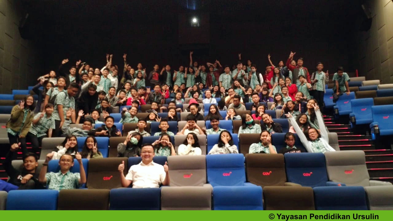 BANDUNG, SERVIAMNEWS.com– Seluruh siswa-siswi dan guru SMP Santa Ursula, Bandung, Jawa Barat nonton bareng Film “Susi Susanti: Love All” di Bioskop, Jumat, 8 November 2019. Film Susi Susanti: Love All mengisahkan perjuangan dan kerja keras pebulutangkis legendaris Susi Susanti. Dalam film, banyak pesan dan pelajaran yang bisa kita ambil seperti bahwa musuh terbesar adalah diri kita sendiri. Para peserta didik belajar bahwa rasa takut tidak perlu dimusuhi namun harus kita terima.