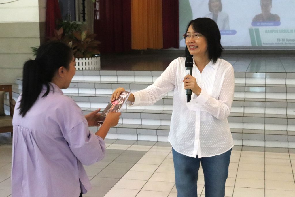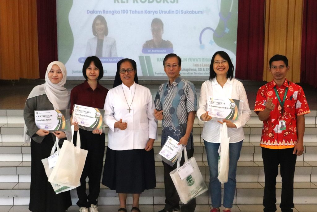 SUKABUMI, SERVIAMNEWS.com – Kampus Ursulin Yuwati Bhakti Sukabumi menyelenggarakan seminar kesehatan bertajuk “Cek Fakta Kesehatan Reproduksi” di aula Sekolah, pada Jumat, 8 Agustus 2025. Hadir sebagai narasumber yaitu dokter spesialis dr. Caroline Tirtajasa, Sp.OG (K) dan dr. Martasono. Acara turut dihadiri juga oleh Ketua II Yayawan Yuwati Bhakti, Sr. Theresia Sri Biastuti, OSU, M.Pd, orang tua peserta didik, seluruh pegawai, dan Pengawas Pembina SD Yuwati Bhakti, Bapak Anwar Gymaris, M.Pd.