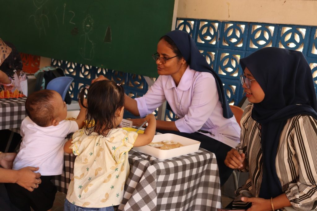 SUKABUMI, SERVIAMNEWS.com – Puluhan peserta didik TB-TK Sukapirena, SD dan SMP Yuwati Bhakti, pendidik, tenaga kependidikan, serta para suster Ursulin Komunitas Sukabumi mengisi acara Festival Kuliner di Gedung Keluarga Kudus (GKK) Paroki St. Joseph, Sukabumi, Jawa Barat, Minggu, 18 Mei 2025. Festival kuliner merupakan salah satu kegiatan yang diselenggarakan oleh Sie Pengembangan Sosial Ekonomi (PSE) sebagai wadah pengembangan UMKM umat Paroki St. Joseph Sukabumi.