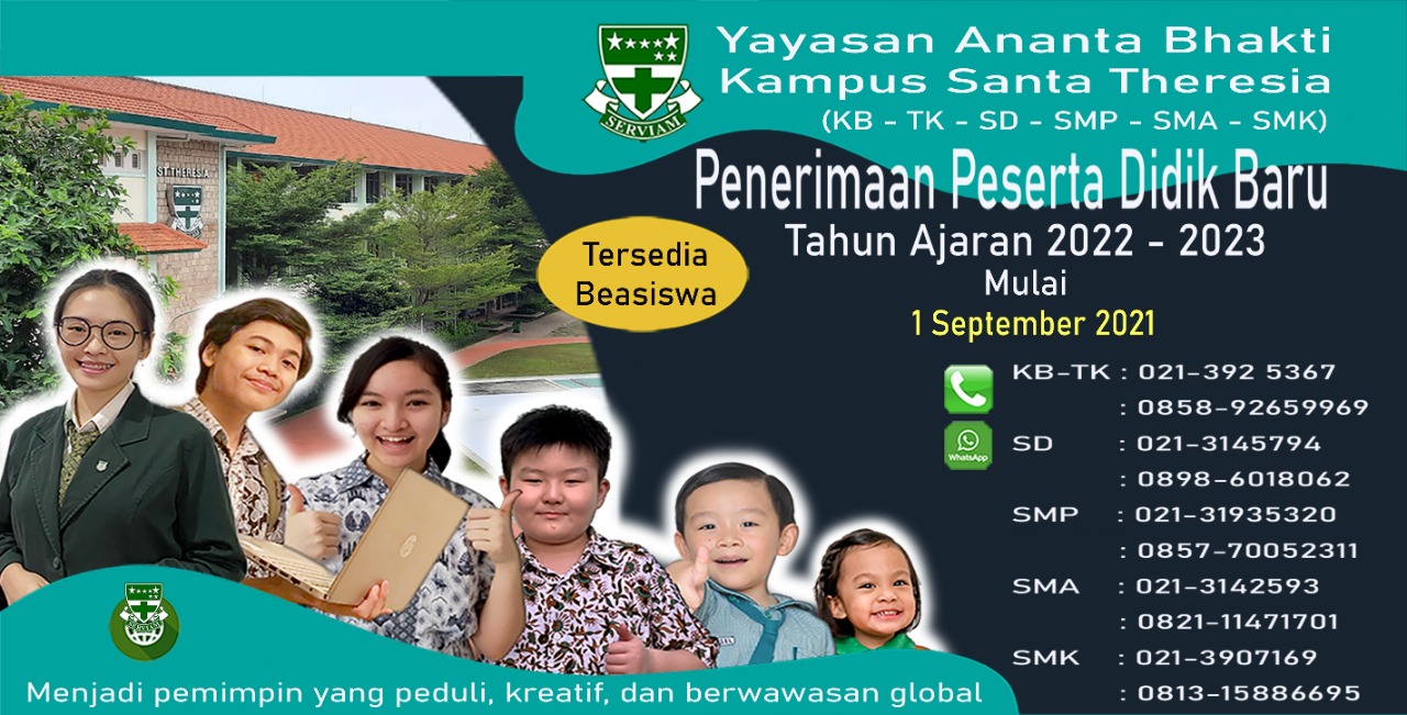 September 1, 2021 - September 30, 2021 PPDB Kampus Santa Theresia Jakarta Tahun Pelajaran 2022/2023 Kampus Santa Theresia Jakarta Jalan H. Agus Salim No. 75, Menteng,, Jakarta Pusat, DKI Jakarta, Indonesia
