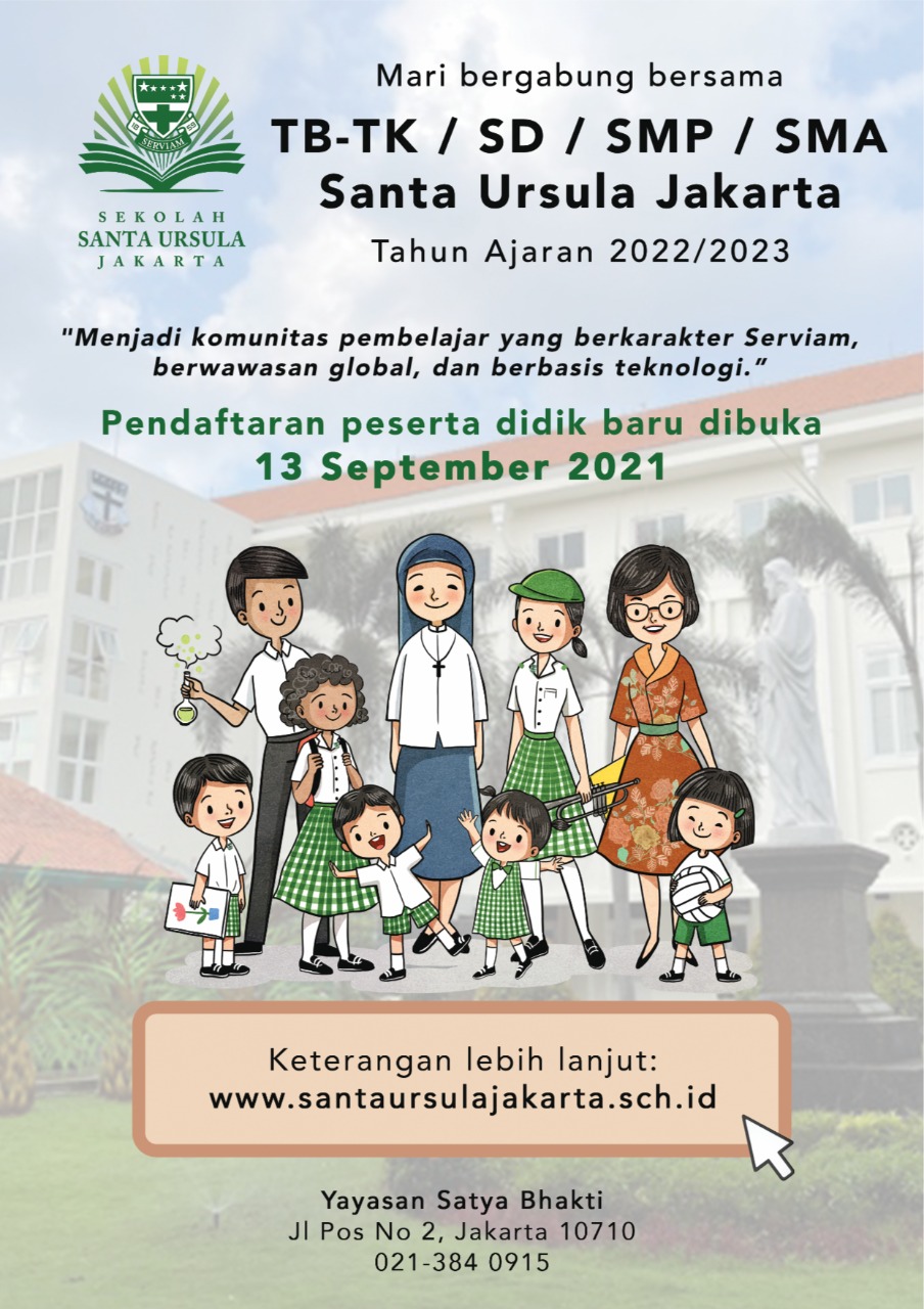 September 13, 2021 - September 30, 2021 PPDB Kampus Santa Ursula Jakarta Tahun Pelajaran 2022/2023 Kampus Santa Ursula Jakarta Jl. Pos No. 2, Pasar Baru, Sawah Besar, Jakarta Pusat, DKI Jakarta, Indonesia